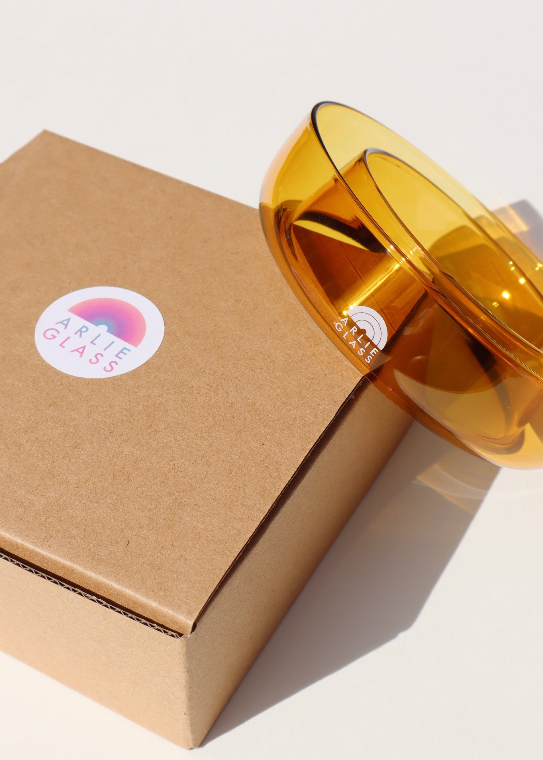 * While kiln annealed for best strength and durability, please be sure to always handle and store your Arlie Glass pieces with care.