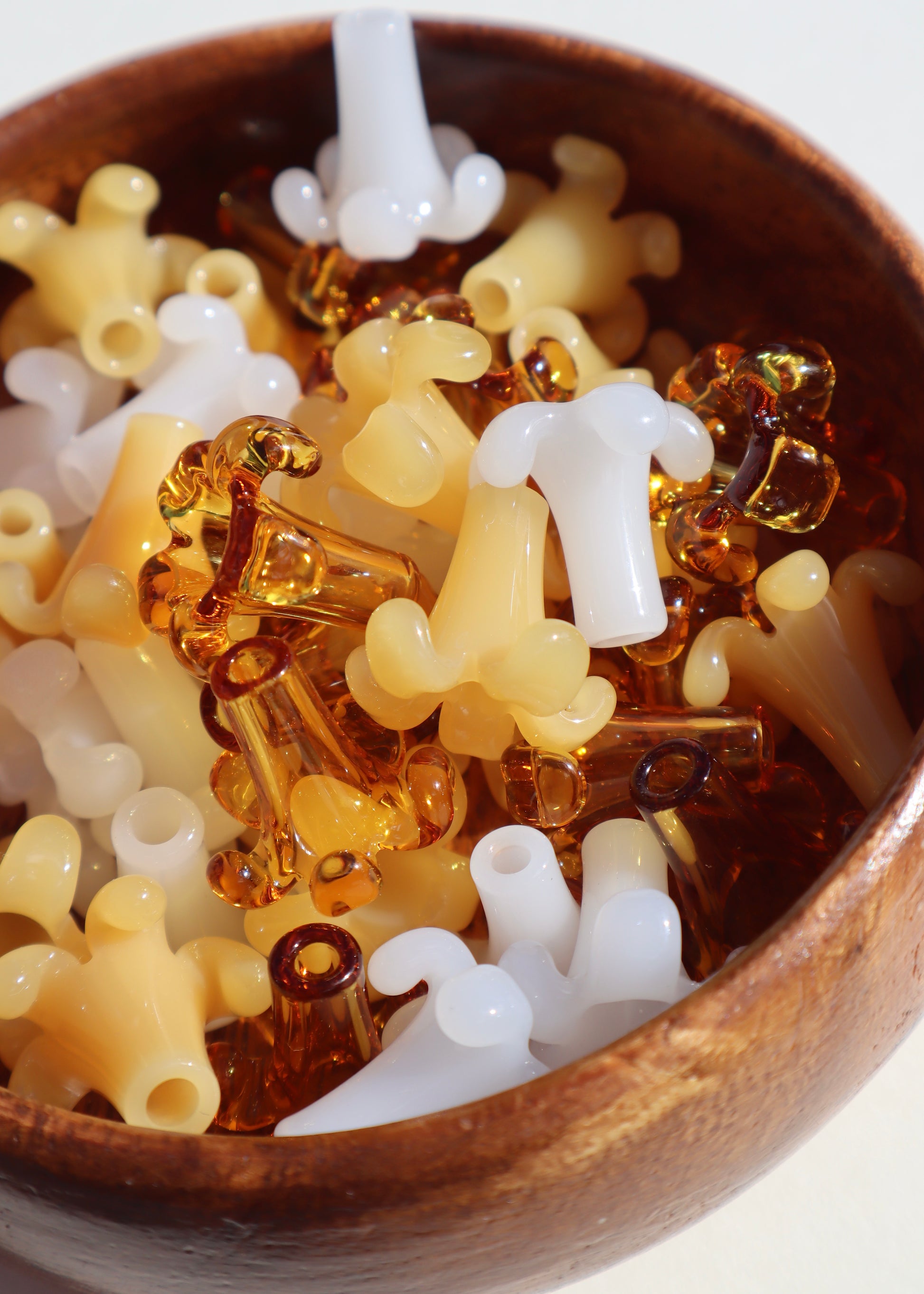 - Slide these interchangeable pua onto your Arlie Glass hoops or make your own earrings and necklaces. Lots of ideas with these little puakenikeni! 🌼