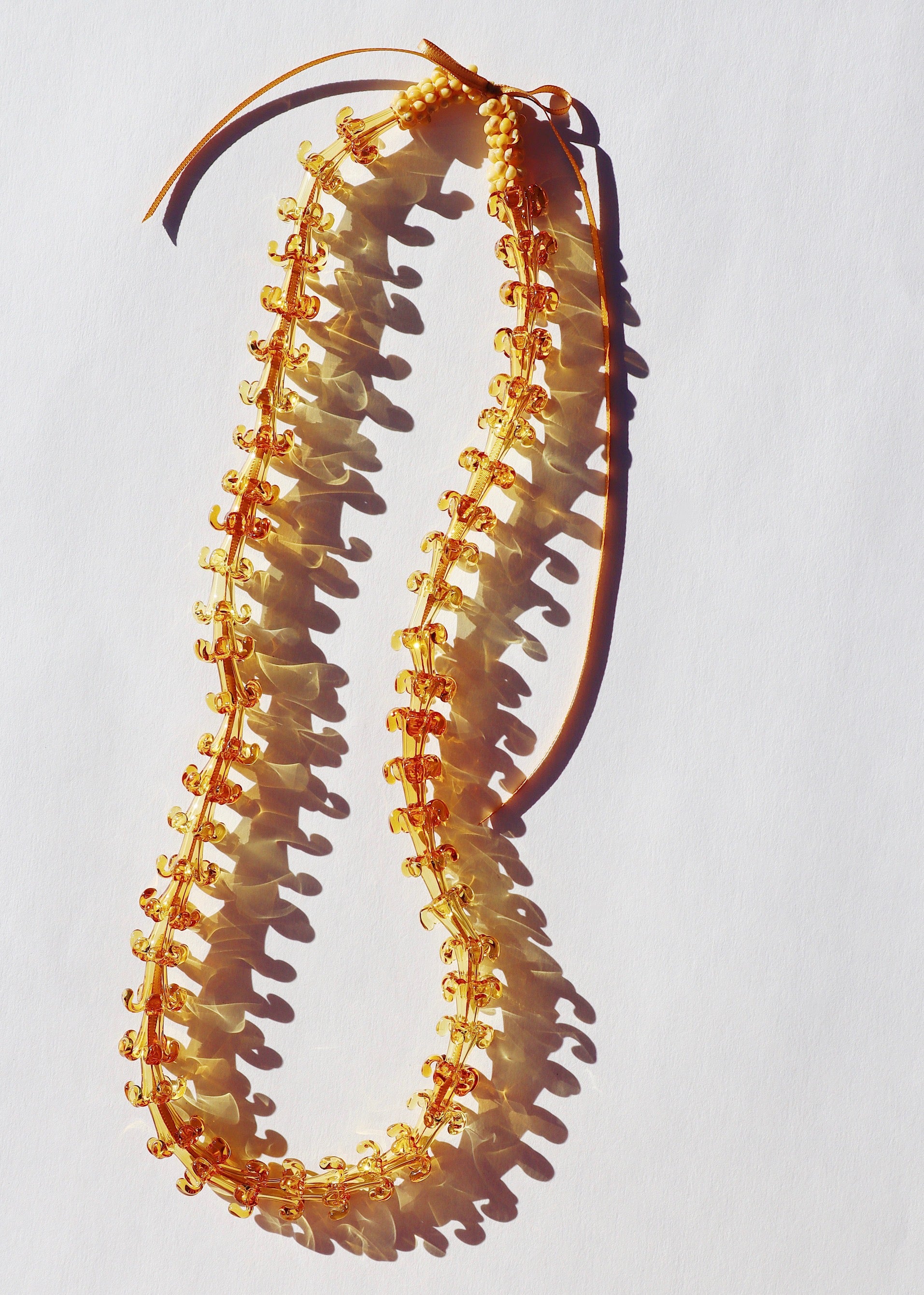 Forever-lei art! Hang this special full glass puakenikeni lei on the wall and let the light catch it’s petals. ☀️🌼